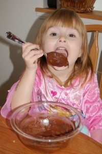 And of coarse there was the licking of the spoon (that is the best part of being a kid…) O.k so I did sneak a lick too!
